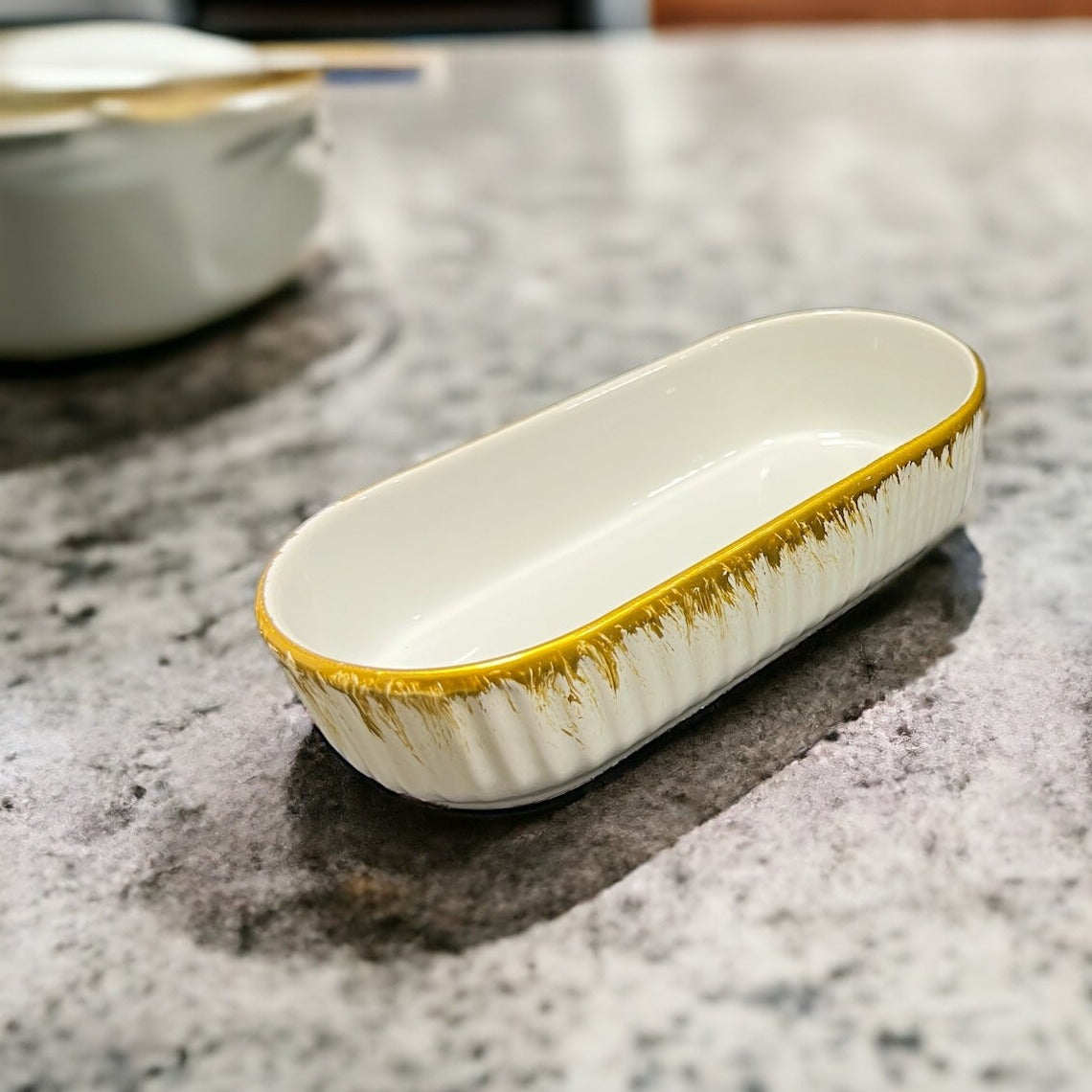 Add a touch of elegance to your home! The stunning color and hand painted gold trim will surely impress your guests. Perfect for serving food, snacks, desserts or as a decorative piece. This bowl is sure to be a conversation starter.