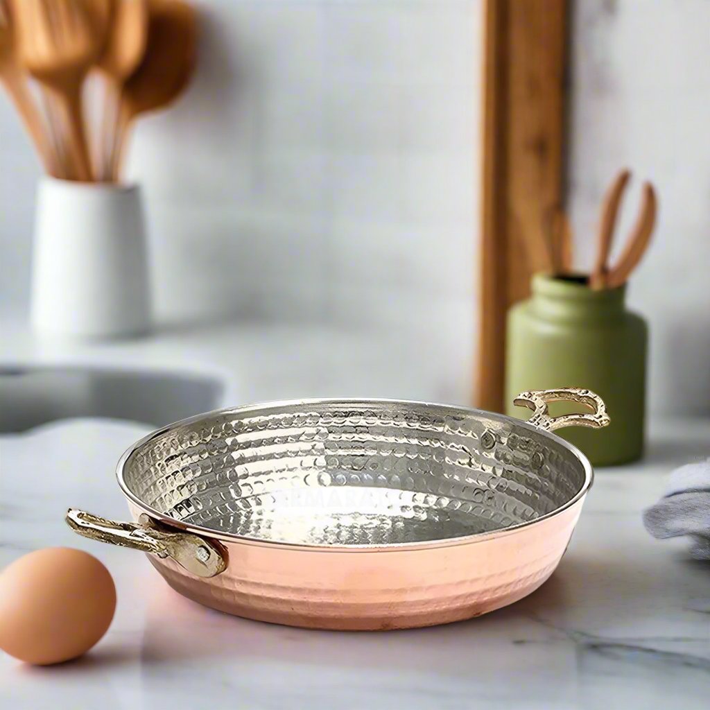 Expertly crafted by hand, this copper pan combines the durability and heat conductivity of real copper for an unparalleled cooking experience.