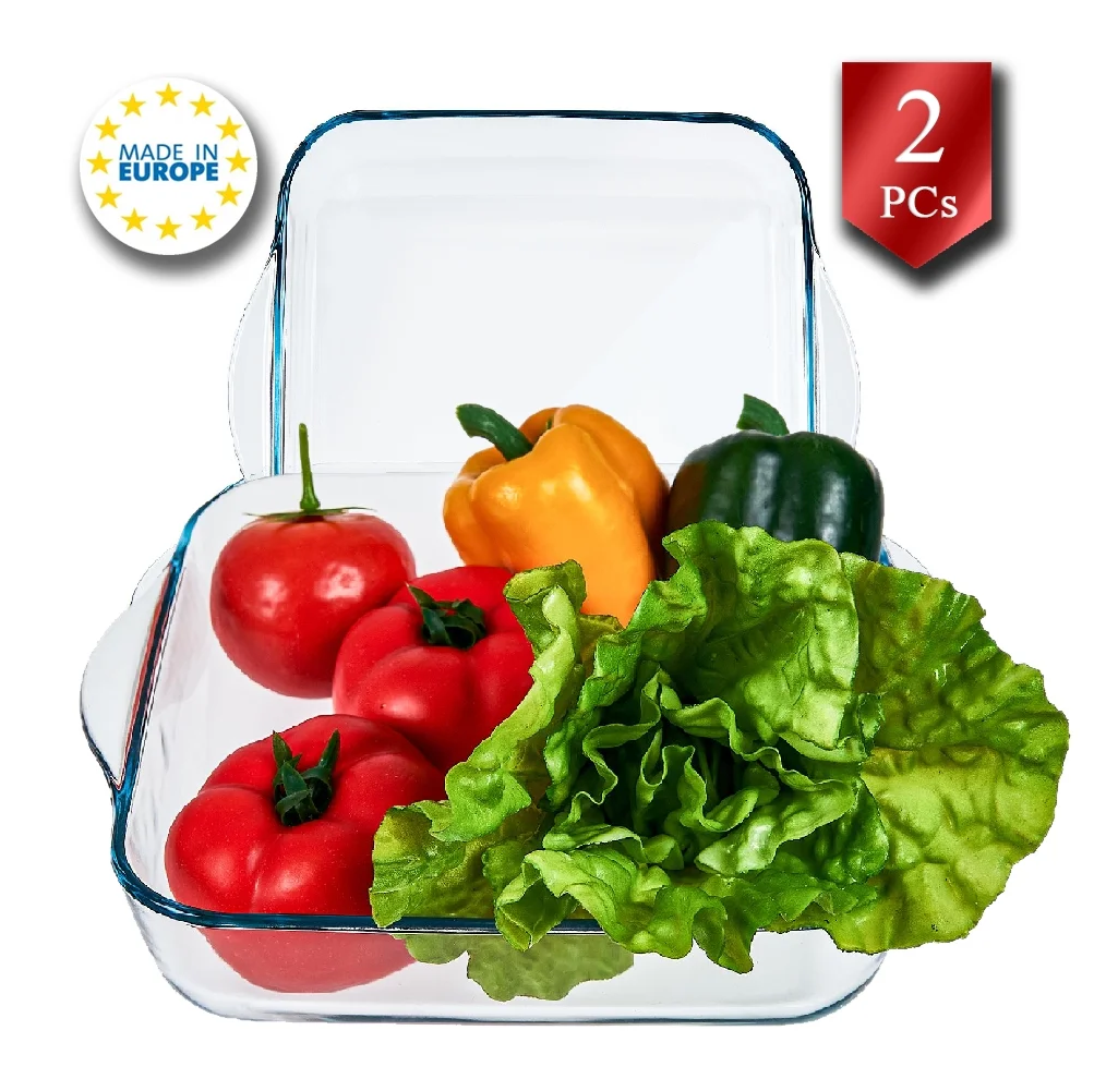 • INCLUDES: This set contains (2) square glass baking dishes with handles.